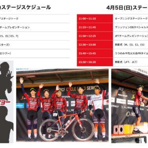 4月5日(日)の「JBCF NTT東日本 宇都宮清原クリテリウム」では、メインステージで多彩なイベントが開催されます。